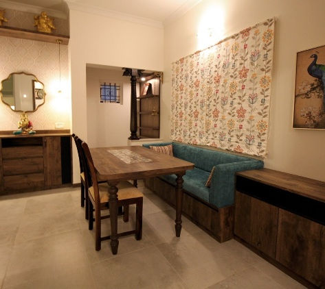 A strong foundation is essential for any home, but sometimes a makeover is needed to truly reflect the lives of its inhabitants. In the renovation of Harini and Vasanth’s villa, we infused a special touch that rejuvenated their living space. From a complete overhaul of the flooring to stylish bathroom upgrades, we created a beautiful sit-out area to enjoy the lush greenery and a warm, inviting interior. The modern kitchen is designed for culinary adventures, complemented by customized furniture that enhances the overall vibe.